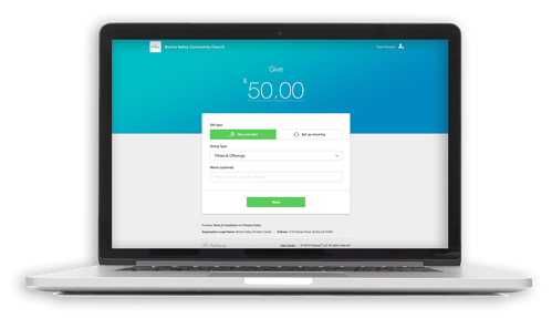 Using this safe and secure portal, you can send one-time gifts, schedule recurring giving, and even look back on your giving history.
